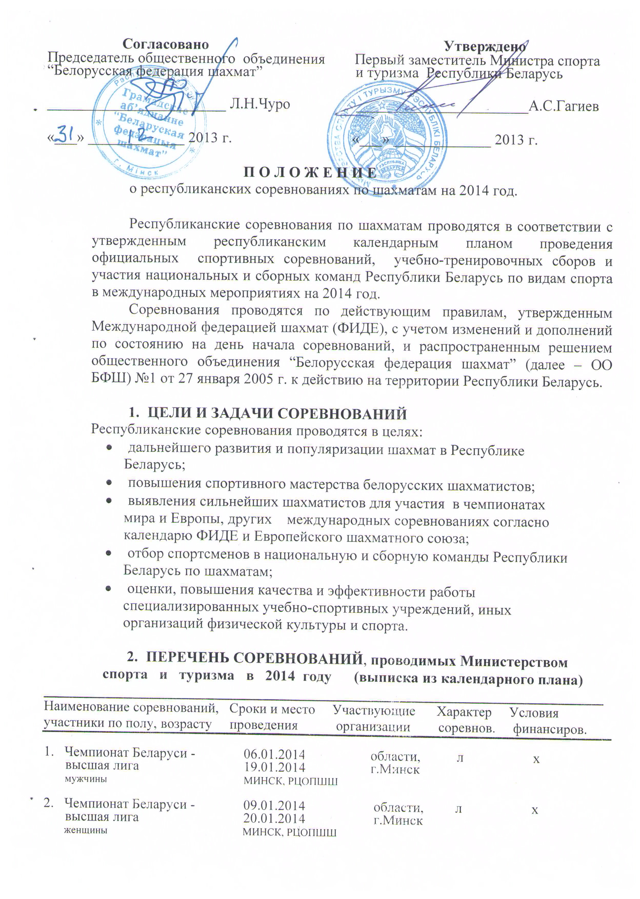 ПОЛОЖЕНИЕ о республиканских соревнованиях по шахматам на 2014 год