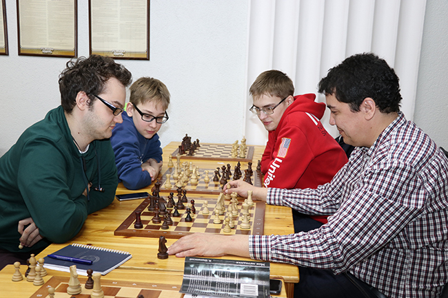 Один из лучших в мире теоретиков игры Владимир Тукмаков, который уже не первый год занимается с нашей мужской командой и самыми талантливыми юношами, добраться до Минска не сумел. Сами понимаете почему. Однако без тренера и тренировок парни все равно не остались: в Белорусской федерации быстро сориентировались и пригласили в качестве наставника еще одного видного знатока шахматной мысли — гроссмейстера Александра Рустемова.