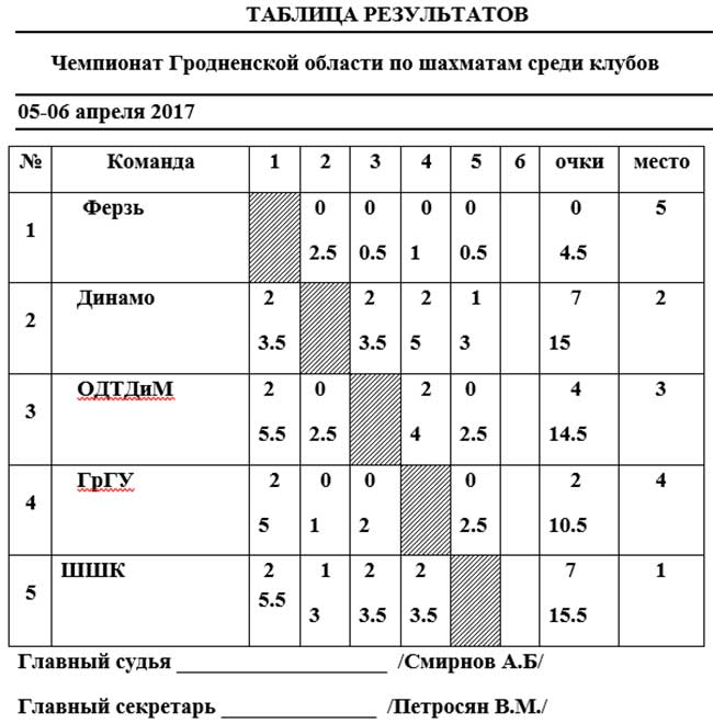 В г.Гродно в уютном шахматно-шашечном клубе с 05 по 06 апреля 2017 года после небольшого перерыва состоялся командный клубный чемпионат Гродненской области по шахматам. Насколько мне известно, в прошлом году такого соревнования не было вообще, да и в этом году, если бы не я, то данное мероприятие могло бы не состояться.
