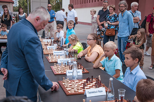 Закрытие детских турниров прошло в доброй и приятной атмосфере, и плавно перетекло в сеанс одновременной игры, который давал Анатолий Евгеньевич Карпов лучшим молодым талантам. И тут надо в очередной раз отметить, что Гродно становится одним из шахматных центров нашей страны, за исключением Минска, не один город не представлен даже двумя участниками, а Гродно – тремя, при этом Максим Лугинин сумел добиться ничьи с маститым противником. Надеюсь, участие в данном фестивале придаст дополнительный импульс всем способным молодым шахматистам.