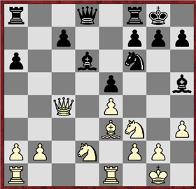 Черные сыграли 16… Фb8. На первый взгляд неплохой идейный ход. Но при более детальном рассмотрении оказывается ошибочным ввиду интересной идеи в распоряжении белых. Дело в том, что белые вовсе не обязаны защищать пешку b2, а вправе немедленно приступить к своему главному плану — переводу коня на f5. Т.к. этот маневр явно повысит активность белых фигур. В случае же 17. Кh4! — Фb2?, белые получают перевес путем 18. Лаb1 — Фа3, 19. g4! с идеей на 19…Сg6? словить ферзя 20. Kg6 — hg, 21. Фс2 — Сb4, 22. Kc4 — Фс3, 23. Фе2! с неизбежным Лс1.