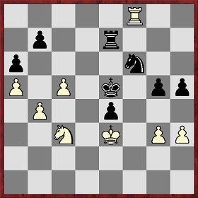 И тут белые вместо 1. Rg7! (направлено против …Ke8 с темпом) с примерным вариантом 1… Re8, 2. Ne3 — Bh4, 3. Ke2 — Re7, 4. Rg8 — Re8, 5. Re8 — Ke8, 6. Nc8 += сыграли 1. Nc8?? Последовало 1… Bh4 — /+, и победа досталась черным. Очень важно сохранять концентрацию на протяжениивсей партии и всего турнира!
