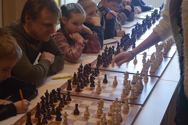 Команда детей против команды родителей. Если победа достанется взрослым – дети обещают быть послушными весь вечер, а если детям – полное непослушание. Согласитесь, есть за что бороться! И дети, превратившись в настоящие шахматные фигуры, одолели в непростой схватке команду черных.