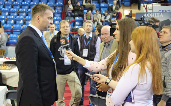 Организаторы постарались обеспечить медийную поддержку чемпионату. Журналисты беспрерывно дежурили в игровом зале в надежде услышать и запечатлеть что-нибудь «эксклюзивненькое». И поскольку исход не предсказал бы даже букмекер, девушки-репортерши, боясь не угадать будущих триумфаторов, фотографировали всех подряд. В наше время интерес к великой игре упал почти до нулевой отметки, а шахматы не просто отдалились от общества, но и превратились в некое подобие закрытого анонимного клуба или «масонской ложи», куда вход «непосвященным» воспрещен. Поэтому любое паблисити под флагом «Миру-шахматы!» выгодно для всех. А шахматисты в свою очередь не должны забывать, что их великая миссия заключается не только в том, чтобы играть, но и популяризировать игру. Ведь самые понимающие из них охотно идут на контакт с прессой, а другие бегут от СМИ, как черт от ладана, считая саморекламу недостойной. Рекламой является только ваша игра и ваши турнирные достижения. Поэтому надо решительно и навсегда отбросить ложную скромность и постоянно заявлять миру о шахматах. Ибо под лежачий камень вода не течет.