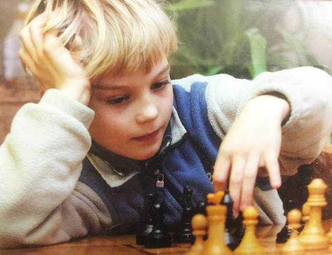 Всякий раз со смешанным чувством удивления и восхищения наблюдаю за этим юношей. Один из немногих белорусских гроссмейстеров, который, уж не знаю, движимый ли патриотическими чувствами или безграничной любовью к игре, не стесняется играть с “простыми смертными” в турнирах, которые многие гроссмейстеры посчитали бы слишком недостойными своего высокого звания. Конечно, не так легко ‘’загрузить’’ несколько десятков пунктов в слабом турнире, если твой рейтинг более 2500. Почти все надо выиграть. Из какого неиссякаемого источника полными пригоршнями черпает этот симпатичный белокурый юноша с серьезным лицом такую сильную мотивацию играть и такое стремление побеждать? А ведь семья не шахматная и даже не спортивная. А началось все с бабушки. Математик по профессии, к которой на каникулы отправляли мальчика, чтобы чем-то занять своего гиперактивного внука, и научила его играть в шашки и шахматы. Она и заметила редкие способности Владика, так как спустя пару дней после того, как ребёнок впервые узнал правила игры, стал часто обыгрывать свою наставницу. Жизнерадостного непоседу решили “утихомирить” и привели в 7 лет в республиканский центр олимпийской подготовки сначала на шашки. По счастливой случайности, кабинет перепутали, и ребенок оказался в классе шахмат. Так и остался в них.