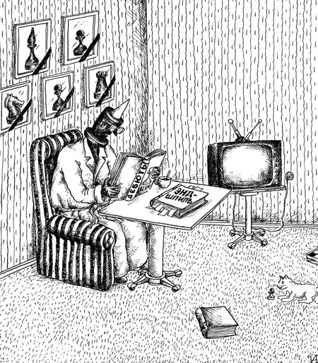 — Я регулярно просматривал «Крокодил», рисовал в факультетской стенгазете. А однажды на глаза попалась книжка из серии «Мастера советской карикатуры», рисунки в этой книжке мне явно показались слабыми. В предисловии книги красочно расписывалось, как талантлив автор. И тут меня посетила шальная мысль: «А ведь я могу лучше». И уже через полгода первые два моих рисунка появились в «Литературной газете».