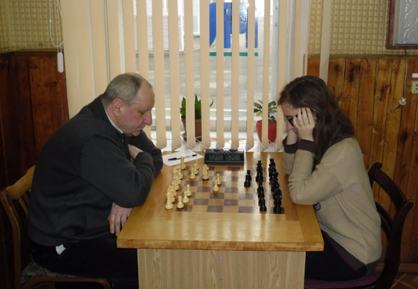 После чего начался матч: ветераны выставили, почти, оптимальный состав, и как в последних играх в упорной борьбе одержали победу. Несмотря на выигрыш Ольги у председателя областной федерации шахмат А. К. Сарбая (1,5:0,5) — общий счет матча 18,5 на 11,5 в пользу ветеранов. Также победы у школьников одержали Макар Емченко, Павел Горелышев и Станислав Дубяго, у ветеранов Владимир Лаврик, Петр Полозов, Владимир Шавырин, Василий Бабанов, Светлана Тюленева, Александ Давыдов, Владимир Петровский и Галина Хайкина. Все победители были награждены шахматными книгами. В заключении главный судья матча С. В. Дынкин пожелал участникам праздничного настроения, удачи и встречи в следующем матче — 9 мая в День Победы! И в заключении фото от главного секретаря соревнований М. В. Полуэктова о моментах поздравлений и баталиях за шахматной доской: