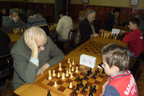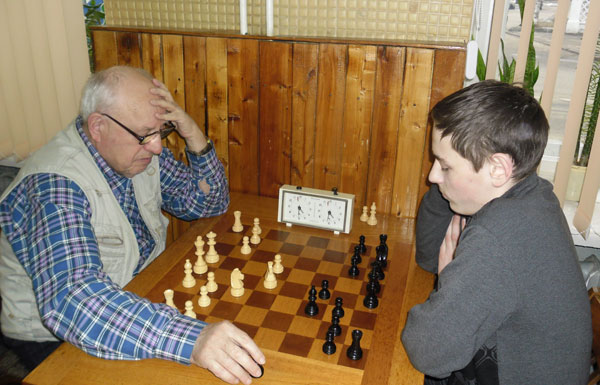21 февраля в шахматно-шашечном клубе "Ладья" состоялась традиционная матчевая встреча "Ветераны-школьники". Перед началом матча инструктор-методист ГУ "ГФСК Витебск" С. В. Дынкин подвел итоги недавно завершившихся соревнований чемпионата г. Витебска (1,2 лига): 1 место занял Петр Куряков — 7,5 из 9 очков, 2 место Владимир Шавырин — 6,5 из 9 очков, 3 место с таким же результатом Леонид Козлов, так же в высшую лигу прошли Вячеслав Курдюков и воспитанники СДЮШОР №4 Макар Емченко и Владислав Воротынский.