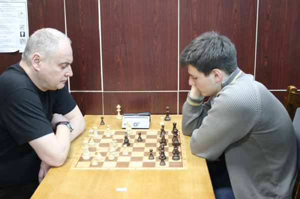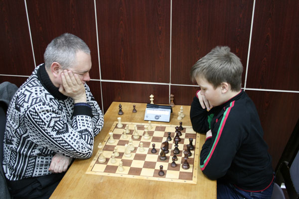 Более подробно хотелось бы все же остановиться на быстрых. Блиц есть блиц. Что с него взять? Тем более, что здесь недостатка в экшине не было. Остановлюсь на самых ярких моментах. В 4 туре порадовали увлекательным «блокбастером» Егор Филипец и Петр Корзубов. Приземлившийся в блице где-то в районе экватора, Егор решил загладить свое «нефартовое» выступление победой в рапиде и решительно был настроен рвать и метать. И обещание выполнил. Его соперник Петр Корзубов так лихо атаковал, что остался без ладьи. Но от эшафота не откупишься. «В безнадежной позиции надо подкручивать игру, нападать на пешки, шаховать короля, предлагать сопернику высказаться. А вдруг ему сказать нечего?» (Геллер). Пробовал мастер подкрутить игру, но все это оказалось лишь блефом. С Егором такие штучки «не прокатывают». Ему всегда есть что сказать. «Сам себя переиграл, — сказал после партии Петр Владимирович. — Я по привычке атакую молодых, а надо играть с ними «от обороны». Решив действовать с молодежью в соответствии с новоизбранной стратегией, в 6 туре Петр Владимирович остался с одним конем против слона и двух пешек другого молодого глорихантера Валентина Ежеля. Здесь, кажется, можно было начать комментарий со слов: «Выигрывает и