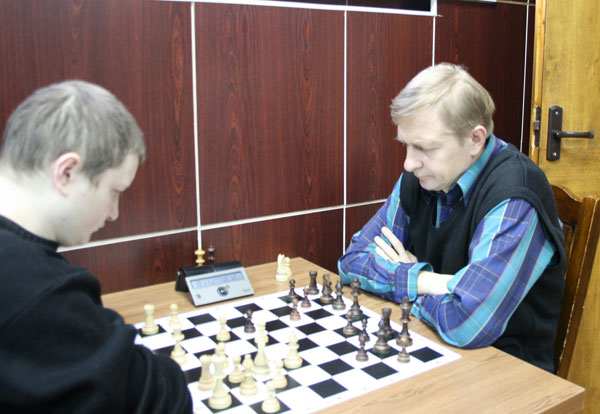 Если говорить о блиц-турнире, то можно сказать, что его первая половина прошла под флагом «вождя» могилевских шахмат (цитирую местных шахматистов) международного мастера Петра Корзубова. Поражение Петра Владимировича от Валентина Ежеля в 6 туре — это начало лидерства очень габаритного игрока, чемпиона Беларуси 98 г. Германа Кочеткова. Трудно сказать, зацепила ли его игра. У меня не сложилось впечатления, что Герман истово «вкалывал» на шахматной доске или, как говорят, сослал себя на галеры. В 7 туре, к примеру, увлекшийся маршем пешки в ферзи не заметил поставленного Ежелем под бой ферзя. 2 последних тура перешел в режим экономии перед рапидом (2 ничьи с Терзи и Масляковым). Но, видимо, Каисса не предает своих фаворитов. Чистое первое место — прекрасный итог. С результатом 7 очков завершили блиц-турнир Ежель, Корзубов, Каспаров и Терзи. Очень осторожным в этой разминке боем оказался по обыкновению реактивный двигатель блица Сергей Каспаров. Никому не проиграл, но все же 4 ничьих сделали свое темное дело и отодвинули гроссмейстера на 4 позицию — явно не предел его мечтаний.