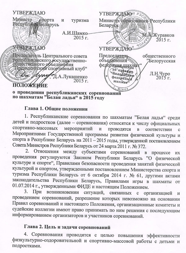 Республиканским соревнованиям среди детей и подростков по шахматам "Белая ладья" дан официальный старт. Подписано положение о проведении данных соревнований.