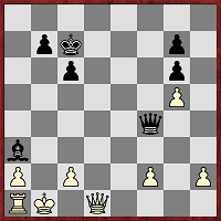 32. Kb1 — Na1, 33. Ka1 — Qf2, 34. b4 — Qg1, 35. Qg1 — Bg1, 36. h3 — Bd4, 37. Kb1 — Kd6, 38. c4 — Bc3, 39. a3 — Ke5, 40. Kc2 — Kd4, 41. Kb3 — Bd2, 42. a4 — c5, 43. b5 — Bb4, 44. h4 — Ba5