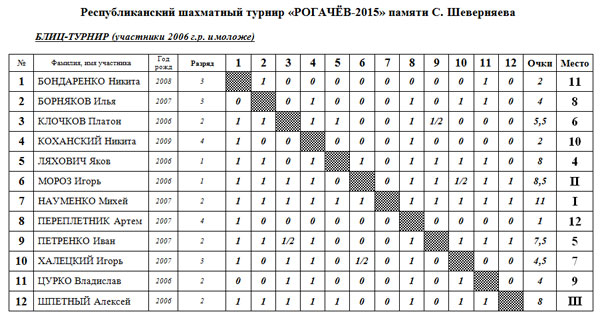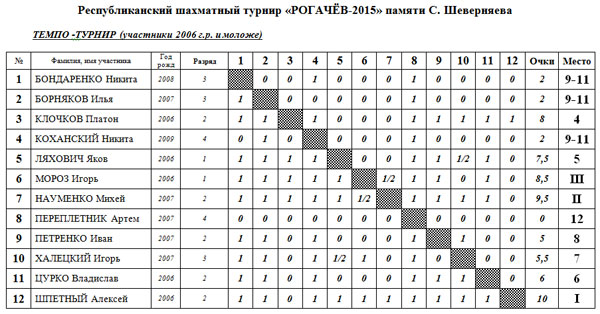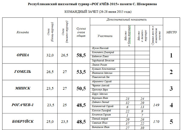 Традиционно в конце июня в городе Рогачеве прошел Республиканский шахматный турнир «РОГАЧЁВ-2015» памяти рогачевского шахматиста, кандидата в мастера спорта, неоднократного призера, победителя первенства Рогачевского района, Сергея Шеверняева (1983-2007).