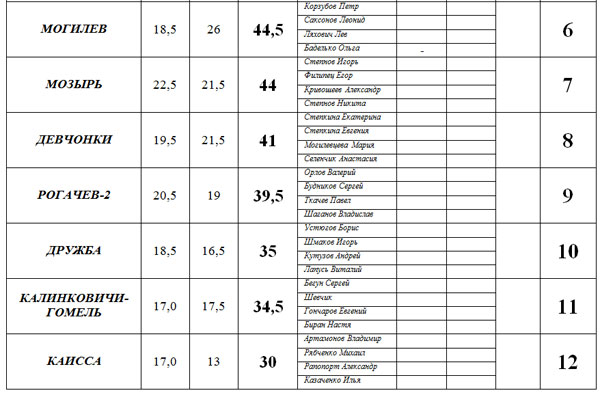 Призы в темпо и блице среди девушек — у Степкиной Екатерины и Селенчик Анастасии; среди ветеранов — у Воронцова И. С. и Артамонова В. В.