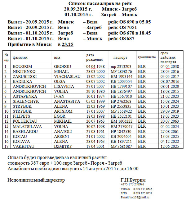 Белорусская федерация шахмат получила ответ от авиакомпании “Австрийские авиалинии”, на нашу заявку о бронировании авиабилетов по маршруту Минск-Вена-Загреб-Вена-Минск, который приводится НИЖЕ.