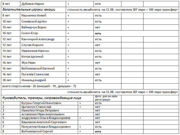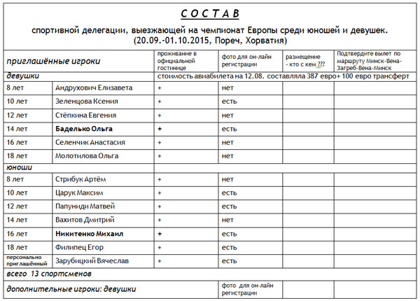 Напоминаем, что членам делегации до 18.00 7 августа следует сообщить детали выезда на Чемпионат Европы.