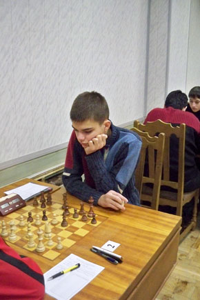 А вот в турнире юношей интрига сохранялась до конца. Долгое время, почти на протяжении всего турнира лидировал Давид Хачикян, однако сильно оторваться от преследователей не удавалось. В итоге перед последним туром при различных раскладах целых 4 участника претендовали на 1-е место, а на тройку — 8 (!) участников. Лишним будет говорить, что напряжение было очень велико. Первым выиграл свою партию Станислав Цыганчук, победив пока менее опытного Антона Сегодника и обеспечив тем самым место в тройке. Теперь все зависело от результатов в остальных партиях. При победе в своей партии, чемпионом становился шедший на пол очка впереди Давид Хачикян. И вроде бы, все к этому шло. Давид выиграл у Ромы Гриба пешку Однако материала на доске становилось все меньше и меньше, а эндшпиль считается сильной стороной Романа. Как итог — ничья. И при равенстве очков Станислав Цыганчук обходит Давида Хачикяна по дополнительным показателям и становится чемпионом. Серебро у Давида. Судьбу бронзы также решили дополнительные показатели. По 6,5 очков Набрали Владислав Ковалев и Анастасия Зезюлькина. Однако одно лишнее очко в дополнительном показателе решило судьбу бронзовой медали в пользу Владислава. Настя четвертая, что также является еще одним ее отличным результатом.
