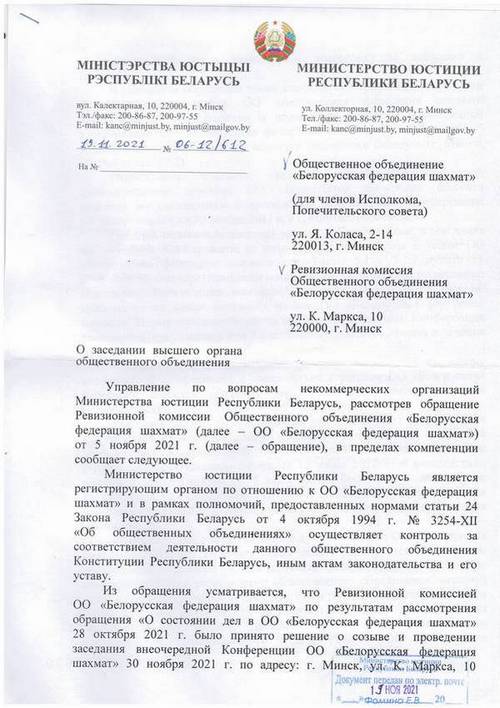 Здесь можно ознакомиться с регламентом предстоящих соревнований, которые пройдут с 27 ноября по 5 декабря 2021 года на базе ГУ «СДЮШОР по шахматам и шашкам» (г.Минск, ул.Раковская, 24)