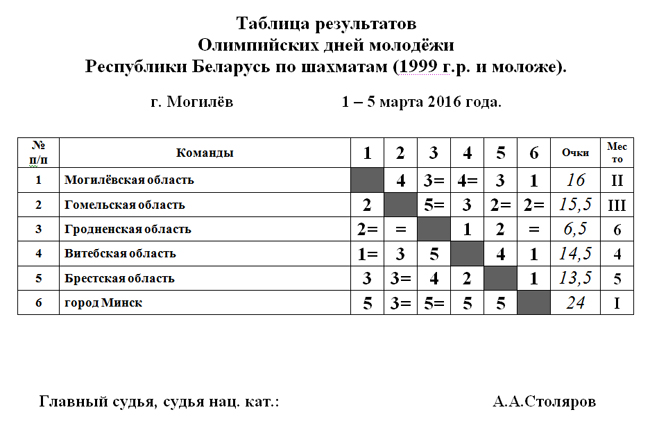 В Могилёве завершились ОДМ Республики Беларусь. Перед началом последнего тура перед участниками выступил директор столичного РЦОПа по шахматам и шашкам С.И.Артюхов, который вручил памятный знак директору Могилёвской ОСДЮШОР В.С.Богданову в знак признательности за его заслуги перед белорусскими шахматами. Затем С.И.Артюхов призвал юных шахматистов получить шахматное образование на открывающейся в этом году специализации БГУФК.