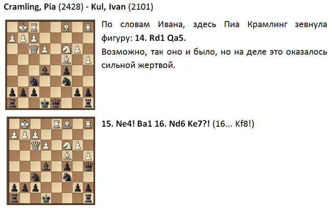 Вы играли когда-нибудь с шахматными легендами? А Иван Куль играл! И партия его с Пией Крамлинг получилась интересной и содержательной.