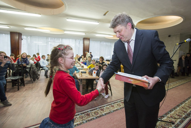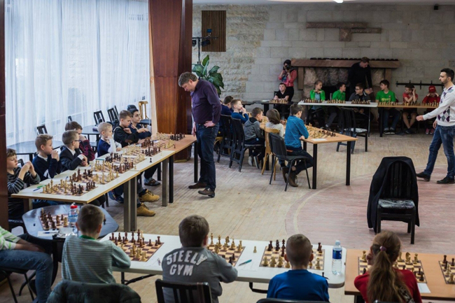 А после окончания турнира маленьких участников ждало еще одно приятное событие - сеанс одновременной игры с гроссмейстерами - Алексеем Шировым и Игорем Коваленко.