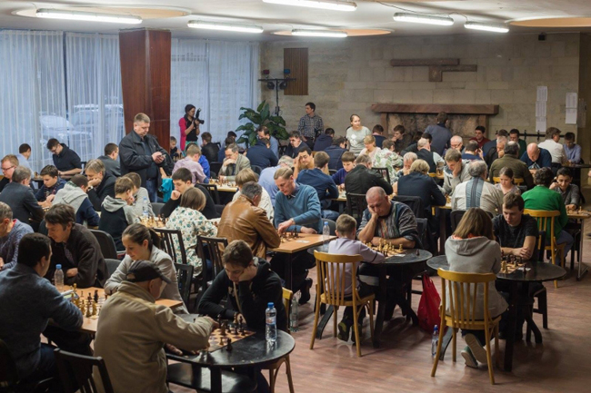Теперь же, вечером, в этом зале собралось 118 шахматистов самого разного возраста и самого разного уровня мастерства, чтобы сразиться в молниеносной игре.