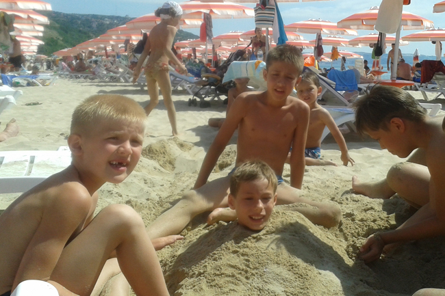 Как всегда, неуёмные, терзающие аниматоров, закапывающиеся в песок на пляже, строящие города и скульптуры, поливающие друг друга водой из помпового оружия, играющие в футбол и запускающие воздушных змеев.