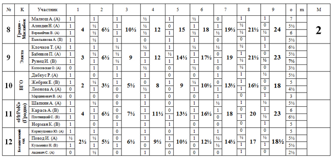 54 Никонов, Тимофей 07 1200 Гродно 2.5 26.5 34.0 13.5