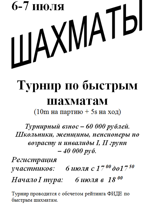6-7 июля в Республиканском центре олимпийской подготовки по шахматам и шашкам завершился очередной турнир по быстрым шахматам с обсчетом рейтинга ФИДЕ.