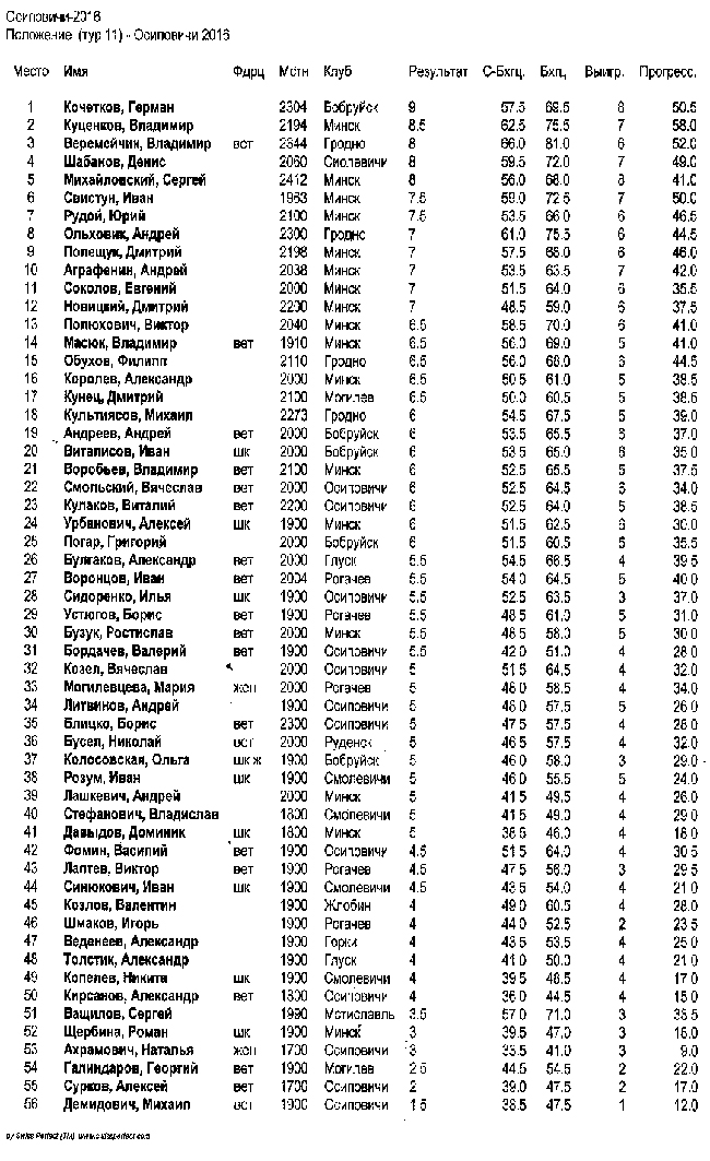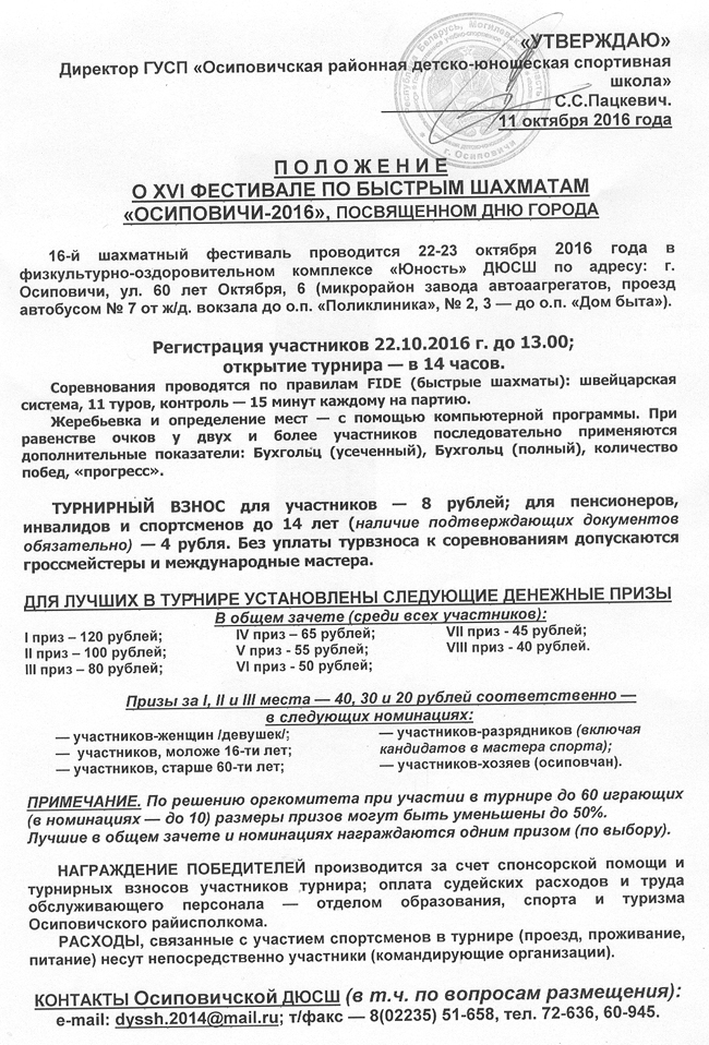 23 октября в Осиповичах завершился XVI шахматный фестиваль по быстрым шахматам посвященный Дню города.