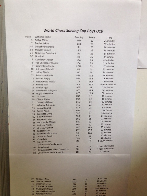 В рамках чемпионата мира проходил Кубок Мира по решению задач (World Chess Solving Cup U 8-12 Batumi-2016) в трёх возрастах. В категории среди мальчиков до 10 лет серебряную медаль завоевал Яков Цеслер, тренер Муйвид Ю.Н.