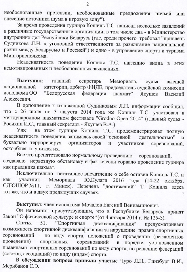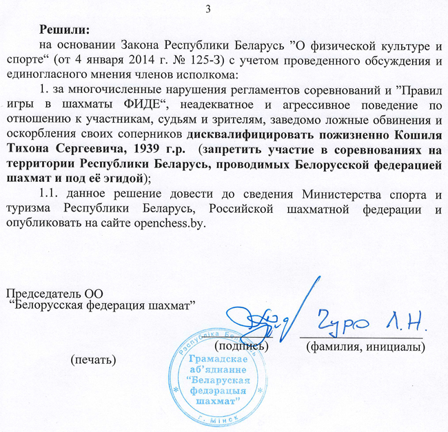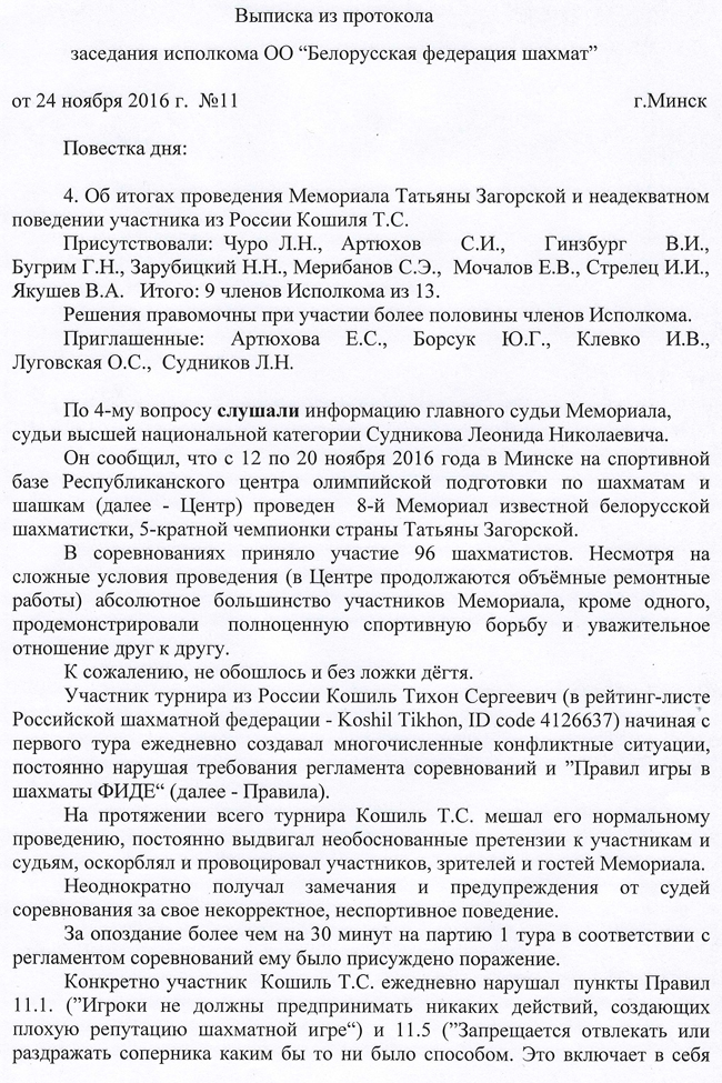 24 ноября состоялось очередное заседание исполкома ОО "Белорусская федерация шахмат". Представляем вашему вниманию выписку из протокола заседания.