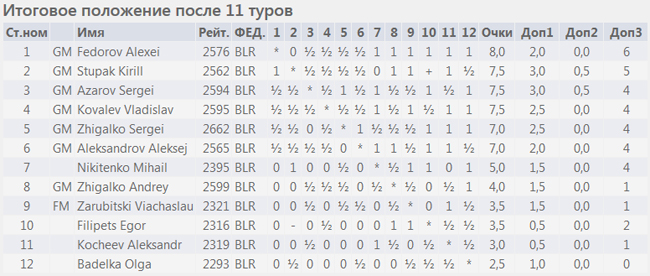 20.01 — начало последнего 11 тура в 10.00.