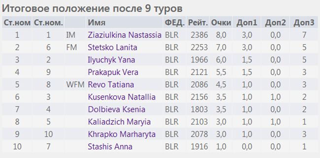 3. число выигранных партий;