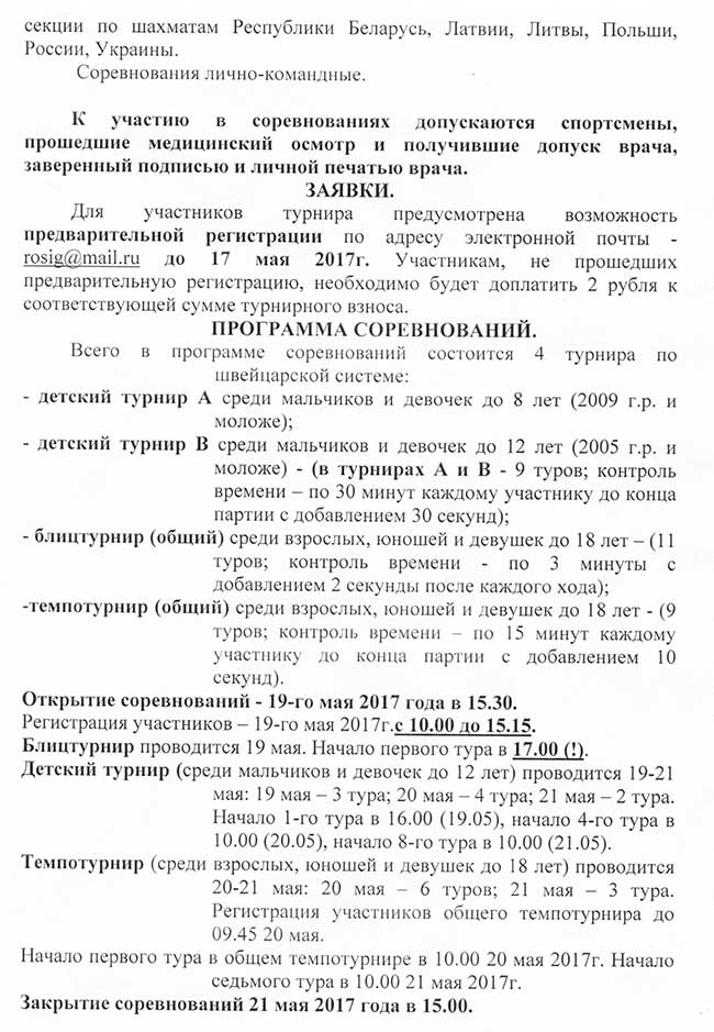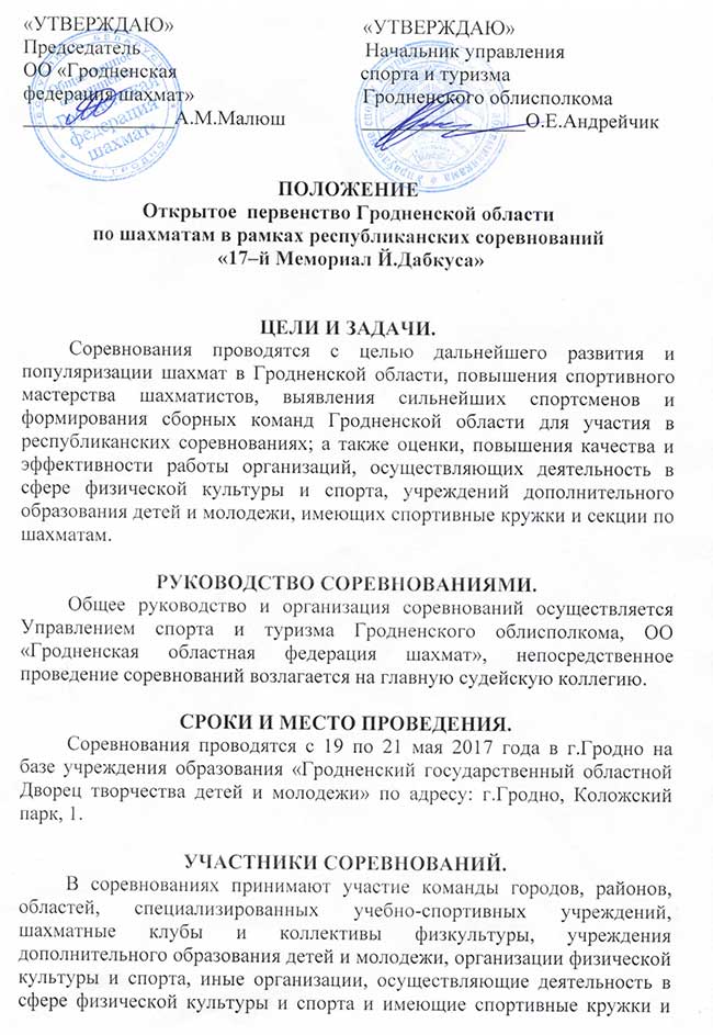 С 19 по 21 мая в областном дворце творчества детей и молодежи г.Гродно пройдет 17-й открытый республиканский турнир по шахматам Мемориал Й.М. Дабкуса.
