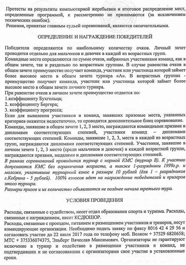 Место Имя Рейт Мстн Клуб Результат Бхгц. Берг. Прогресс. 1 Лазавик, Денис 2006 2000 Минск РЦОП 8.5 55.0 51.25 42.5 2 Юров, Максим 2004 2000 Минск СДЮШОР №11 7.5 52.5 42.00 41.0 3 Климко, Ростислав 2005 1800 Брест СДЮШОР-7 7 54.0 38.50 37.5 4 Тарасенко, Александра 2006 1800 Брест СДЮШОР-7 6.5 58.0 38.50 37.5 5 Дыль, Никита 2005 1800 Бобруйск 6.5 51.0 32.25 34.5 6 Кирпичев, Иван 2006 1800 Пинск 6.5 45.5 28.25 33.5 7 Гончаров, Евгений 2005 2000 Гомель 6 48.5 30.75 28.5 8 Бельмач, Дмитрий 2005 1800 Минск РЦОП 6 46.5 29.50 30.5 9 Карась, Андрей 2005 1800 Гродно 6 45.5 27.25 31.5 10 Гопка, Анастасия 2005 1600 Кобрин 6 45.5 26.50 30.0 11 Плотницкий, Сергей 2005 1800 Гродно 5.5 49.5 28.00 31.0 12 Криволь, Денис 2005 1800 Кобрин 5.5 48.5 25.75 29.0 13 Каташук, Лана 2005 1800 Брест СДЮШОР-7 5.5 47.0 27.50 29.0 14 Остапчук, Марк 2005 1800 Пинск 5.5 46.0 25.00 28.0 15 Белова, Ольга 2004 1600 Кобрин 5.5 46.0 23.75 28.0 16 Киктенко, Ярослав 2004 1800 Пинск 5.5 45.5 25.50 29.0 17 Башинский, Никита 2006 1800 Минск СДЮШОР №11 5.5 44.0 25.00 27.0 18 Зеневич, Ульяна 2005 1800 Барановичи 5.5 43.0 23.25 27.0 19 Мелехов, Артем 2006 1800 Минск РЦОП 5 48.5 22.50 30.0 20 Мельников, Алексей 2006 1800 Гродно 5 44.5 21.50 29.0 21 Лескович, Рада 2007 1800 Пинск 5 43.5 19.25 29.5 22 Скварнюк, Давид 2005 1800 Брест СДЮШОР-7 5 43.5 19.00 27.0 23 Данилова, Варвара 2005 1600 Калинковичи 5 43.5 18.50 24.0 24 Ранченко, Всеволод 2007 1800 Минск РЦОП 5 42.5 22.00 25.5 25 Стамбровская, Мария 2007 1800 Могилев 5 42.0 19.50 26.0 26 Цурко, Владислав 2006 1800 Калинковичи 5 39.5 20.50 23.5 27 Бондарь, Анастасия 2006 1800 Минск СДЮШОР №11 5 37.0 19.75 23.5 28 Липик, Иван 2006 1600 Минск СДЮШОР №11 5 37.0 16.50 20.0 29 Борисюк, Ярослав 2007 1600 Брест СДЮШОР-7 5 37.0 15.00 25.0 30 Жебрик, Евгений 2006 1800 Озёры 4.5 46.0 22.00 26.0 31 Норман, Ксения 2007 1800 Гродно 4.5 44.5 18.75 24.0 32 Сацура, Арина 2006 1800 Гомель 4.5 43.5 19.50 26.5 33 Марханов, Федор 2006 1600 Минск РЦОП 4.5 41.0 17.00 20.5 34 Емельянова, Анастасия 2004 1600 Гродно 4.5 40.5 17.50 24.0 35 Кузмицкий, Иван 2006 1600 Кобрин 4.5 39.0 16.00 19.5 36 Сацкевич, Ангелина 2004 1600 Пинск 4.5 37.5 15.25 20.5 37 Качан, Анна 2006 1400 Кобрин 4.5 35.5 14.50 17.0 38 Кардаш, Антон 2004 1600 Кобрин 4.5 34.5 16.50 20.0 39 Мартынюк, Надежда 2004 1600 Кобрин 4 46.0 20.00 23.5 40 Ногач, Ирина 2007 1600 Кобрин 4 39.5 14.50 20.0 41 Зарецкий, Денис 2007 1600 Кобрин 4 38.0 13.50 18.0 42 Михальчук, Александр 2007 1600 Кобрин 4 37.5 12.50 18.0 43 Радько, Татьяна 2007 1600 Калинковичи 4 34.0 12.50 17.0 44 Абраменко, Владимир 2005 1600 Минск РЦОП 4 33.5 13.50 18.0 45 Пытько, Лев 2007 1400 Ганцевичи 4 32.5 11.75 16.5 46 Баравик, Илья 2007 1600 Минск СДЮШОР №11 4 32.0 11.75 16.0 47 Михальчук, Иван 2006 1600 Кобрин 3.5 41.5 12.50 20.5 48 Булыга, Екатерина 2005 1400 Кобрин 3.5 34.5 11.00 15.5 49 Резько, Илья 2006 1400 Белоозерск 3.5 31.0 10.00 14.5 50 Ребковец, Елизавета 2007 1600 Пинск 3 38.5 9.50 16.0 51 Дементюк, Анастасия 2006 1600 Кобрин 3 37.0 7.50 18.0 52 Власов, Андрей 2004 1400 Москва 3 36.0 9.75 15.5 53 Сверба, Иван 2007 1600 Кобрин 3 36.0 8.50 18.0 54 Абрамчук, Максим 2006 1600 Кобрин 3 35.0 9.50 16.0 55 Лавда, Полина 2004 1400 Калинковичи 3 34.0 8.75 11.0 56 Панасюк, Яна 2007 1400 Кобрин 3 32.5 8.50 13.0 57 Соловей, Татьяна 2006 1200 Кобрин 3 30.0 7.50 11.0 58 Игнатюк, Евгений 2005 1600 Кобрин 2.5 34.5 6.00 13.5 59 Чехович, Дмитрий 2006 1600 Кобрин 2.5 34.5 4.25 7.5 60 Захаров, Владислав 2007 1600 Бобруйск 2.5 30.0 6.75 10.5 61 Грицук, Маргарита 2007 1400 Кобрин 2.5 29.5 4.25 10.5 62 Шевчук, Тимофей 2007 1200 Пинск 2.5 28.0 5.75 10.5 63 Кирчук, Александр 2006 1600 Кобрин 2 32.5 4.50 7.5 64 Дубчук, Максим 2005 1400 Кобрин 1 34.0 4.50 8.0