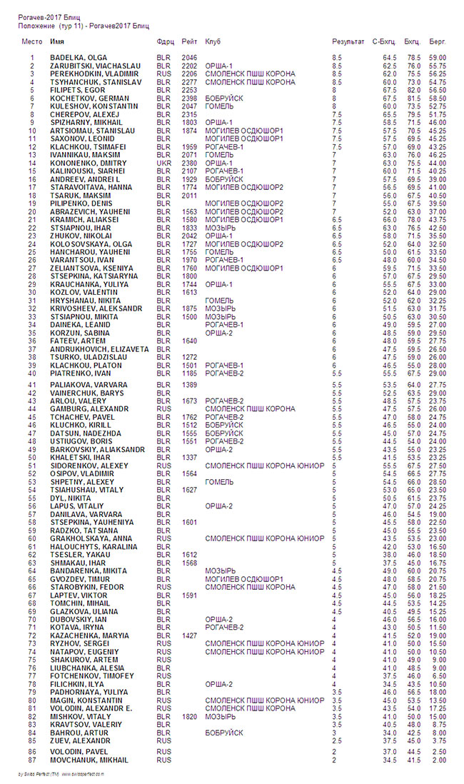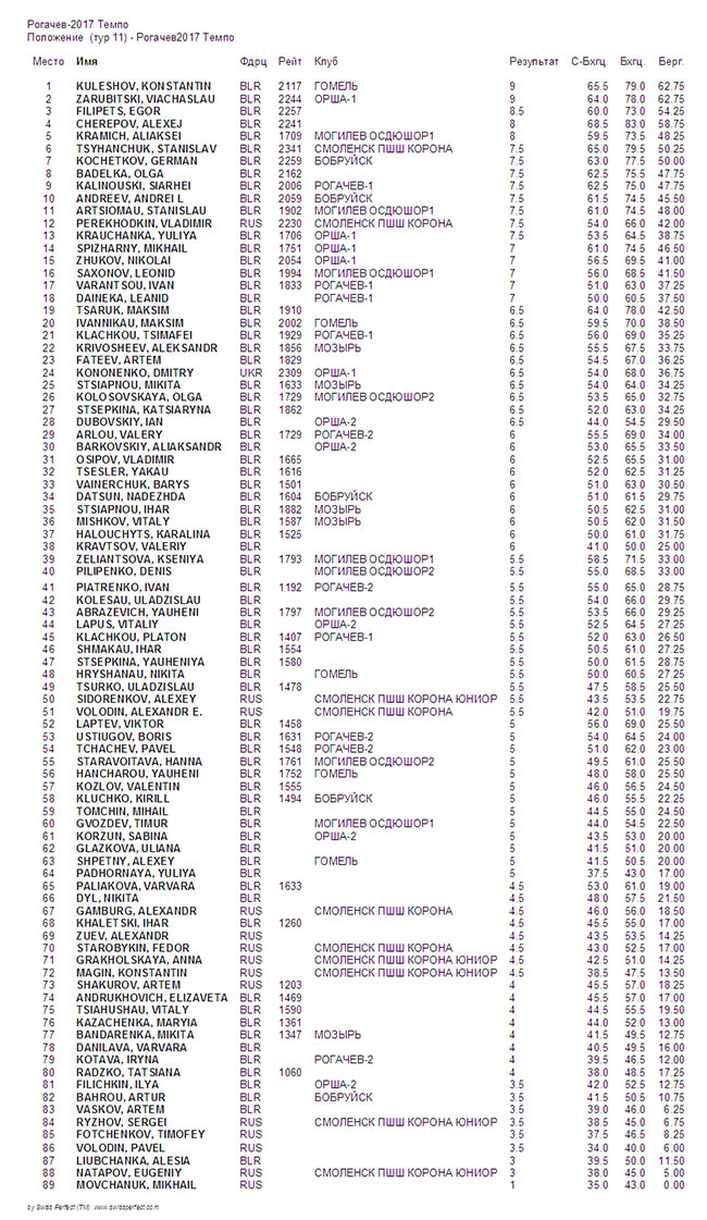 В городе Рогачеве завершился традиционный республиканский шахматный турнир «РОГАЧЁВ-2017» памяти Сергея Шеверняева.В этом году в турнире приняли участие 11 команд из Бобруйска, Гомеля, Могилева, Мозыря, Орши, Рогачева и Смоленска.