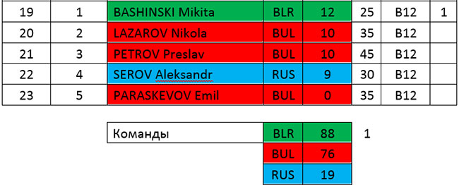 Бронзу в составе объединённой команды Минск – С.Петербург завоевали Хомич Марина, Запуняко Анастасия, Павлышко Роман. Приятным бонусом оказался командный приз в 100 BGN!