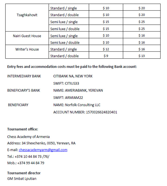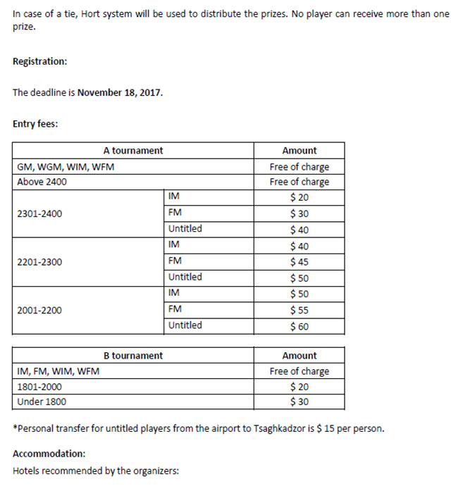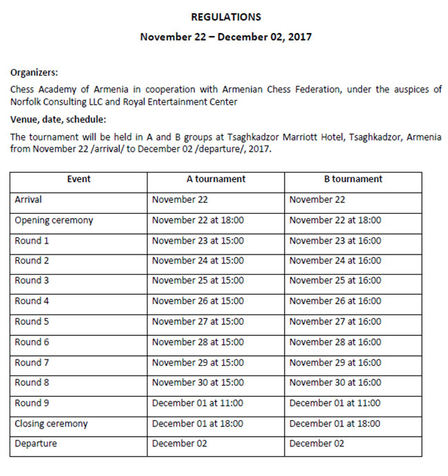 22 ноября по 2 декабря 2017 года шахматная федерация Армении проведет турнир Цахкадзор Опен 2017.Место проведения турнира гостиница Марриотт, Цахкадзор, Армения.