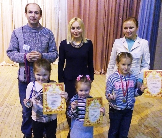 Про последнюю хочется сказать особо, малышка произвела фурор, пользовалась бешеной популярностью у родителей других детей, с ней организовывали фотосессию, но это уже после партии. Во время партии Алиса была сама серьезность, успешно боролась с более старшими противниками, и одержала немало побед, а застеснялась только когда ее вызвали на сцену для награждений. Надеюсь, первый турнир ей понравился, и следующие успехи не за горами. Хочется также отметить, что по итогам турнира норму четвертого разряда, кроме вышеперечисленных выполнили: Астапенко Валерий, Кирко Иван, Хомбак Вениамин, Цихун Сергей, Баранов Максим, Булгаков Михаил, Суслов Михаил, Ясюкевич Владислав, Степанов Максим, Лисоцкий Арсений, Петруцкий Дмитрий, Казенко Иван, Билаш Арсений.