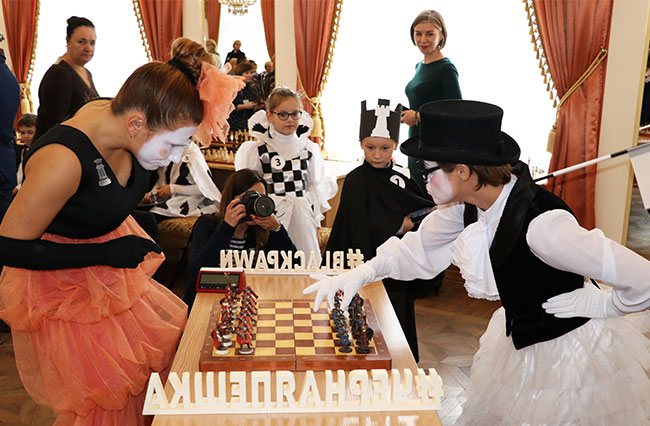 Очень хотела посетить «Черную пешку» и председатель ОО «Белорусская федерация шахмат» Анастасия Сорокина, но именно в эти даты проходит командный Чемпионат Европы в Греции, где она принимает участие в конгрессе Европейского шахматного союза.