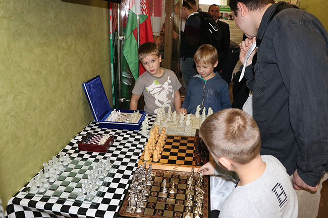 Историческая зона - экспозиция старинных шахмат, биографии известных брестских шахматистов, аквагримм.