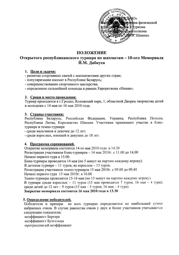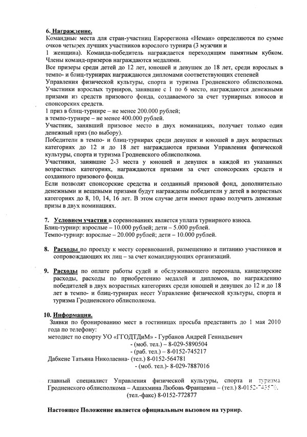 14-16 мая в г.Гродно пройдет 10-й по счету открытый республиканский турнир по быстрым шахматам и блицу.Среди стран-участниц Россия, Украина, Польша, Литва и Швеция.Турнир также будет являться вторым отборочным этапом Кубка Беларуси по быстрым шахматам.