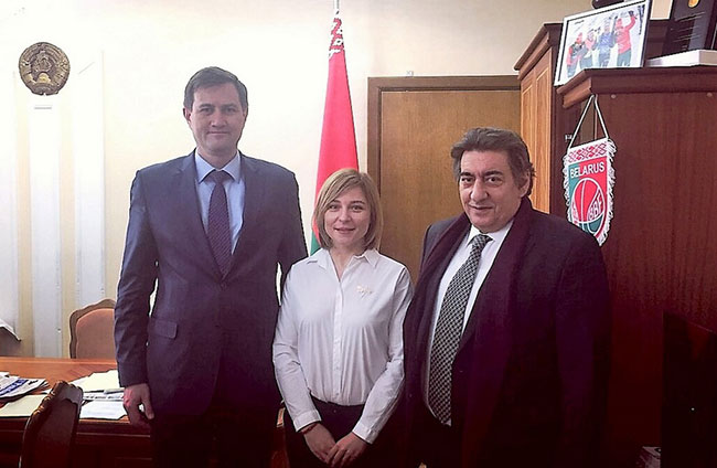 Министр спорта и туризма Республики Беларусь Сергей Ковальчук вручил первому заместителю президента ФИДЕ, исполняющему обязанности президента ФИДЕ Георгиусу Макропулосу заявку на проведение в Минске Всемирной шахматной Олимпиады через четыре года.