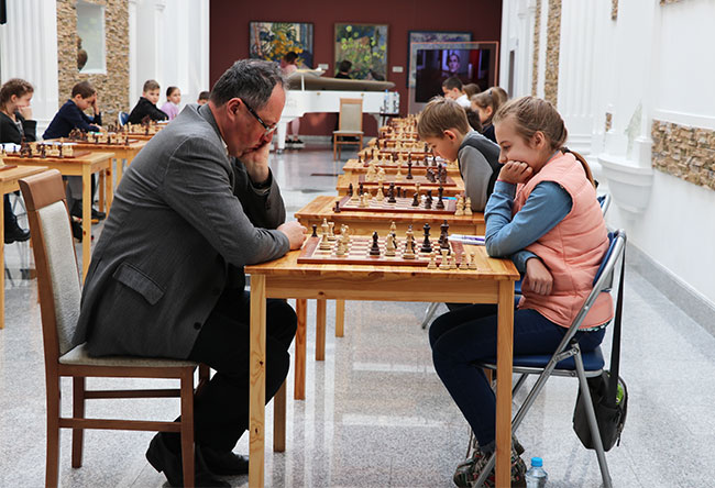 Порой и гроссмейстеру было совсем не просто. Юная брестчанка Саша Тарасенко заставила Бориса Гельфанда пару раз присаживаться. После партии Борис Абрамович отметил Александру за хорошую тактическую выучку.