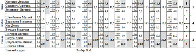 15 Сацура, Арина 2006 1800 Гомель 5 46.5 22.00 29.0