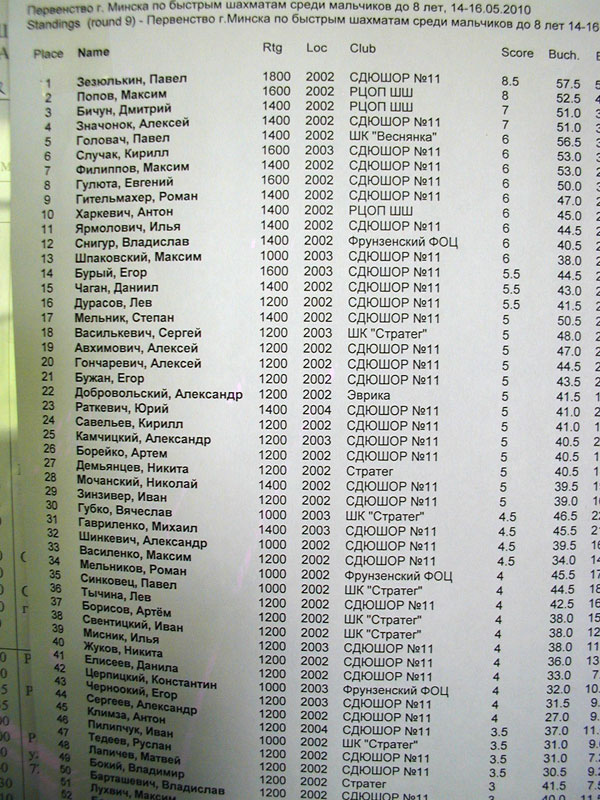 Первенство г. Минска по быстрым шахматам среди мальчиков до 8 лет.