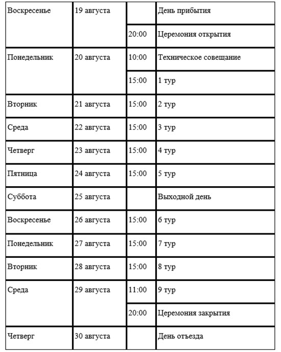Понедельник | 27 августа | 15: 00 | 7 тур |