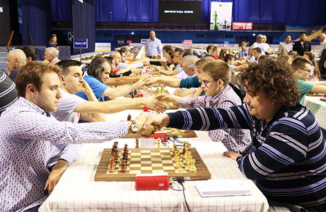 Единоличные лидеры OPENa после шести туров Дмитрий Андрейкин и Владислав Ковалев по праву заняли первый стол. Гроссмейстеры решили не ломать копья и после выхода из дебюта сразу же согласились на ничью.