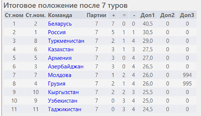 А вот и приятная глазам всех любителей шахмат Беларуси итоговая табличка соревнований: